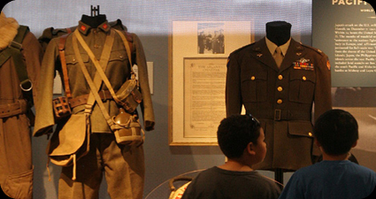Exhibit designer Tomas Ancona asked It’s Alive Co. to solve a couple of real technical challenges. Within the exhibit design, Mr. Ancona imagined floating images projected on mesh screens hanging just behind artifact uniforms on mannequin bodices. In essence, the uniforms blocked the ability to project with typical video projectors without making a shadow. On a different note, but just as important to the museum, it was desired to reuse as much audio and video equipment from their stock as possible.